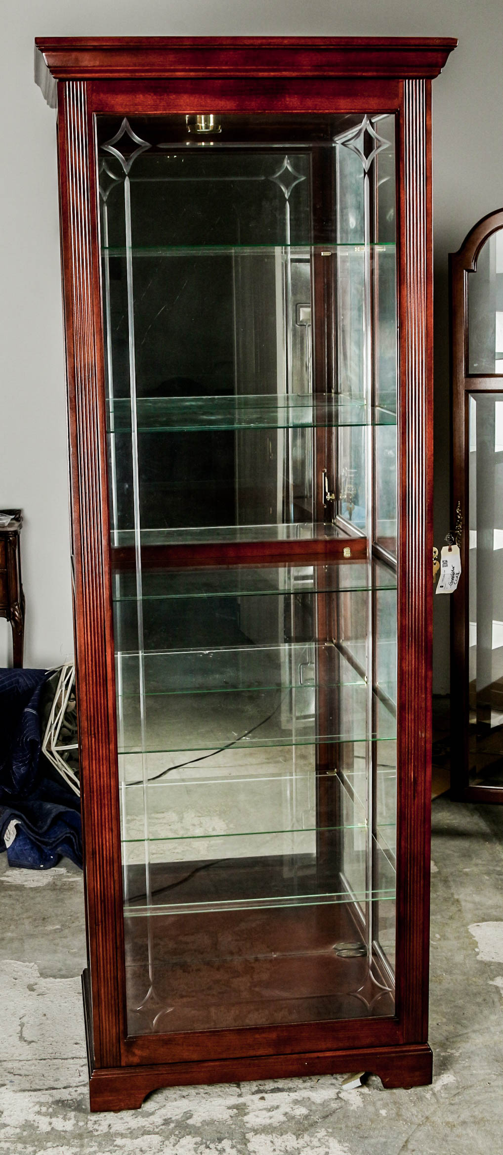 Mirrored curio cabinets create an illusion of a larger space with their reflection pulaski curio cabinet. With halogen lighting illuminating glass shelves and a mirrored back, this elegant curio lets your collectibles take center stage!